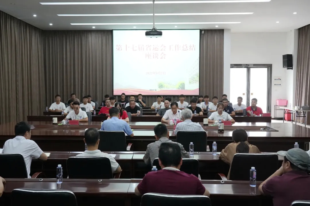 会上,体育学院负责人总结回顾了第十七届省运会工作取得的成绩,提出下一阶段的体育教学工作思路。教练员代表和运动员代表分别进行了发言,分享了备赛、参赛的故事以及心得体会。大家表示,每一项荣誉的背后既凝结着运动员的顽强拼搏和教练员的悉心付出,更凝聚着学校的关心支持和全校师生的加油助力。在取得成绩的同时,师院体育人也在全省更高、更广阔的视野下认清自己的差距和不足,并进一步坚定了前行的方向。今后,大家将与热爱再携手、与学校共成长,乘势而上、踔厉奋发,推动学校体育教育和事业发展再上新台阶,为学校赢得新的荣誉。(校体委 校党委宣传部)