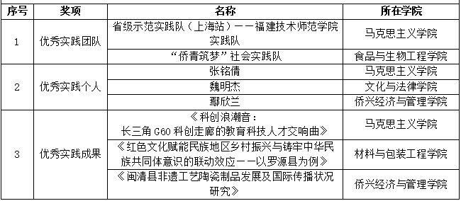 近日,在中共福建省委教育工委公布的2025年“追寻领袖足迹 担当强国使命”全省大学生暑期社会实践活动评选中,我校共获8项省级表彰,创历史新高。其中,优秀实践团队2项、优秀实践个人3项、优秀实践成果3项。
