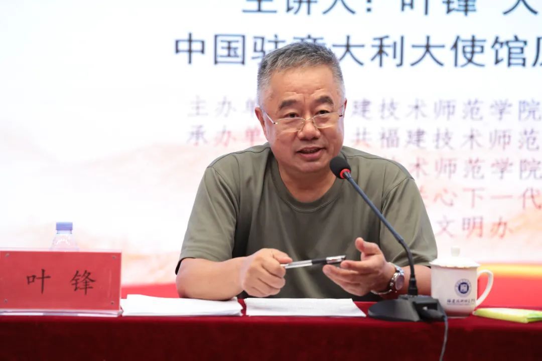 9月25日,由我校与福清市关心下一代工作委员会、福清市委文明办联合开展的“责任时刻挑肩头 祖国永远在心中”专题宣讲会暨校园文化品牌活动香樟夜话第48期在我校五马山校区科学楼金泰学术报告厅举办。中国驻意大利大使馆原武官、联合国和平荣誉勋章获得者、福清市关工委顾问、福清市关工委五老报告团团长叶锋应邀来校,为师生们带来精彩宣讲报告。校党委副书记林海峰向叶锋武官表示热烈欢迎。福清市政协副主席、市关工委主任吴华云,福清市委宣传部副部长、市委文明办主任郭芳辉、福清市关工委常务副主任陈同云校党委宣传部、学生工作部等主要负责人参加了有关活动。