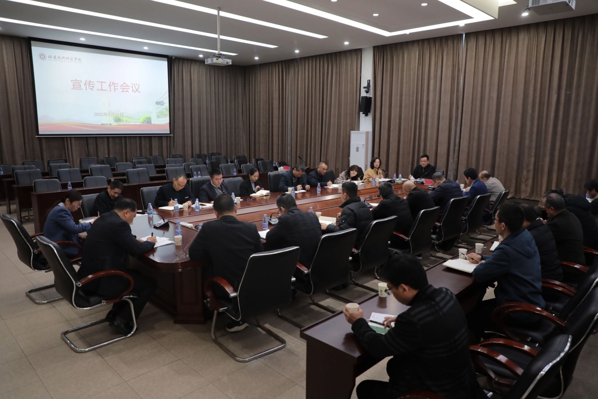 2月27日上午,我校在五马山校区图书馆华贞报告厅召开新学期宣传工作会议。校党委副书记林海峰出席会议。机关各单位、教辅单位主要负责人,各二级学院党组织主要负责人参加了会议。