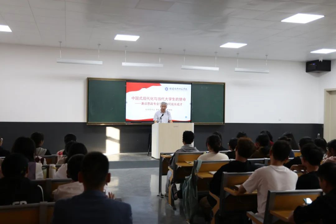 11月23日下午,校党委书记赖海榕教授在五马山校区弘毅苑103教室为2023级思想政治教育专业学生上了一堂题为《中国式现代化与当代大学生的使命——兼谈思政专业学生如何成长成才》的思政课。