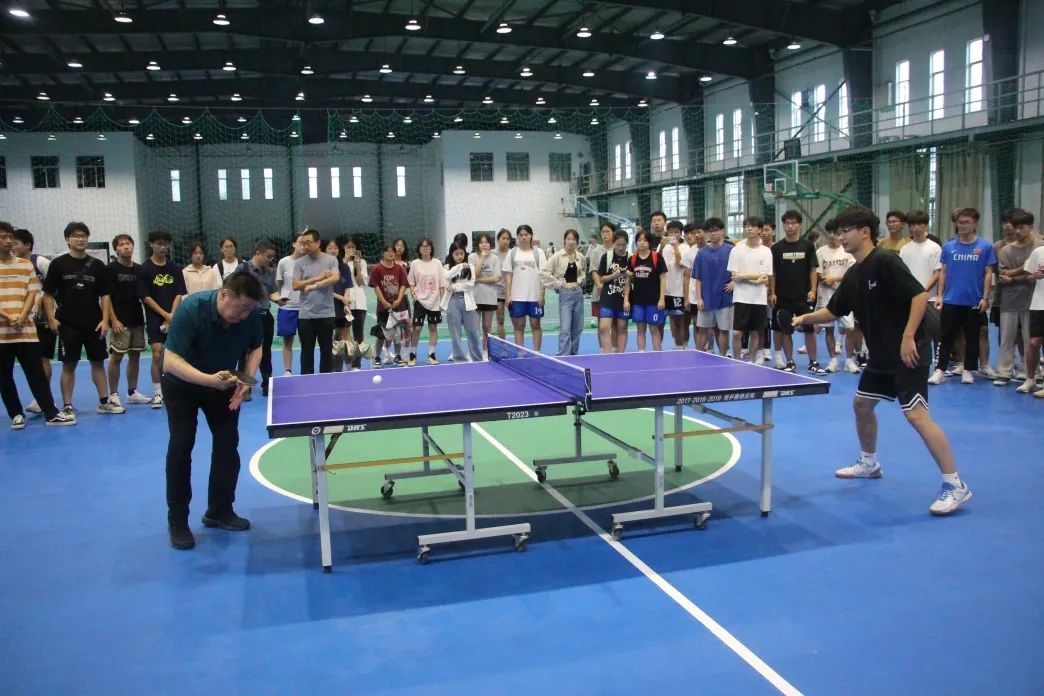 互动环节中,郭教授和师生切磋球艺,对乒乓球重要技术动作进行详细示范和生动讲解,并进行了多方位的项目和动作展示,让同学们“沉浸式”领略乒乓球运动的魅力。