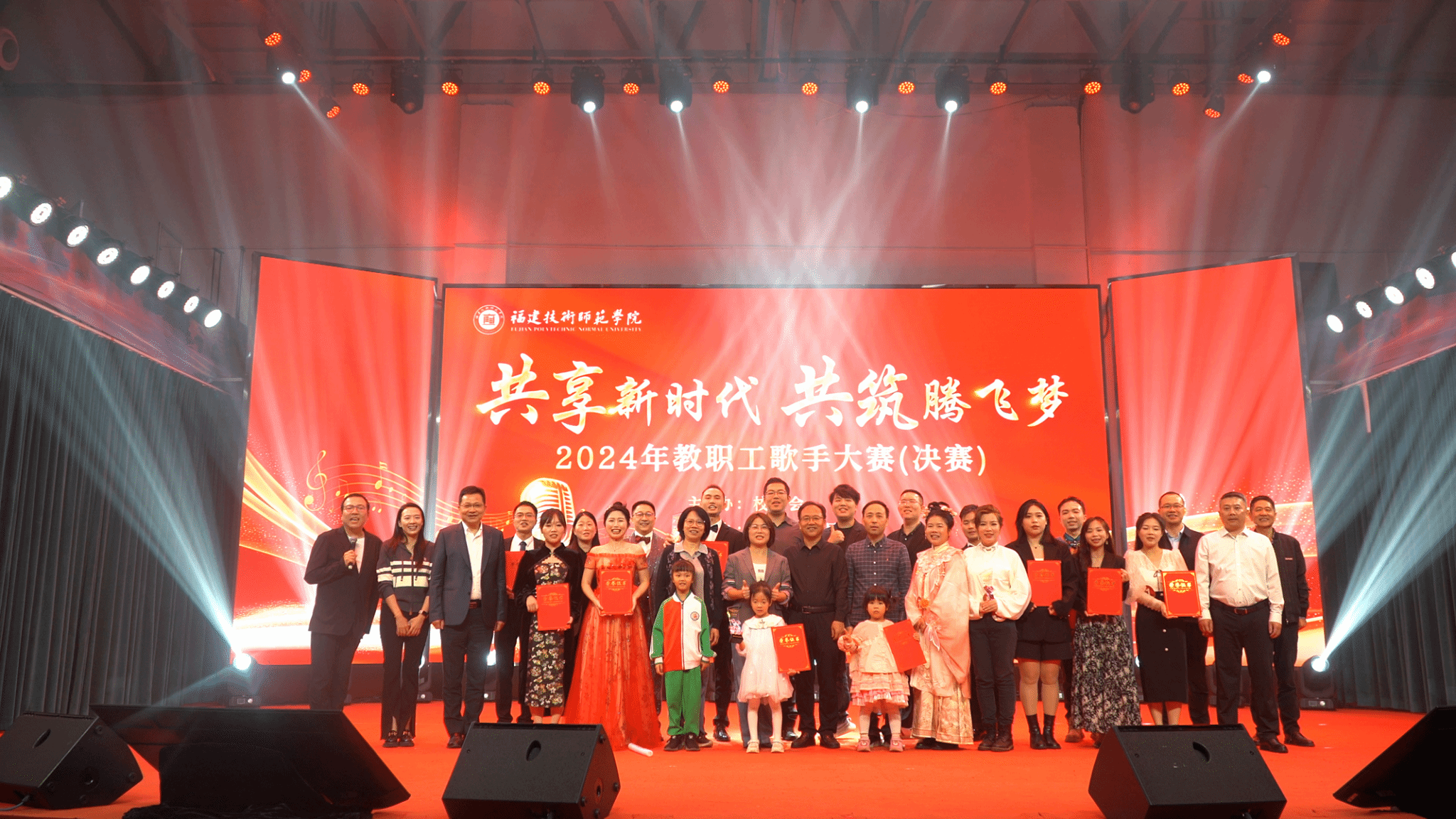 为丰富教职工业余文化生活,营造充满活力、积极向上的校园文化氛围,11月13日晚,我校在石竹山校区学生活动中心举办“共享新时代·共筑腾飞梦”2024年教职工歌手大赛决赛。校党委副书记、工会主席林海峰,校党委委员、纪委书记张翼出席了活动,并为获奖选手颁奖。来自福建省音乐家协会、福清市音乐家舞蹈家协会的江霞英、陈忠标、柴留林、陆则灼、林怡俐等五位老师担任大赛评委。校工会委员、校女工委员、各分工会主席和师生代表观看了比赛。