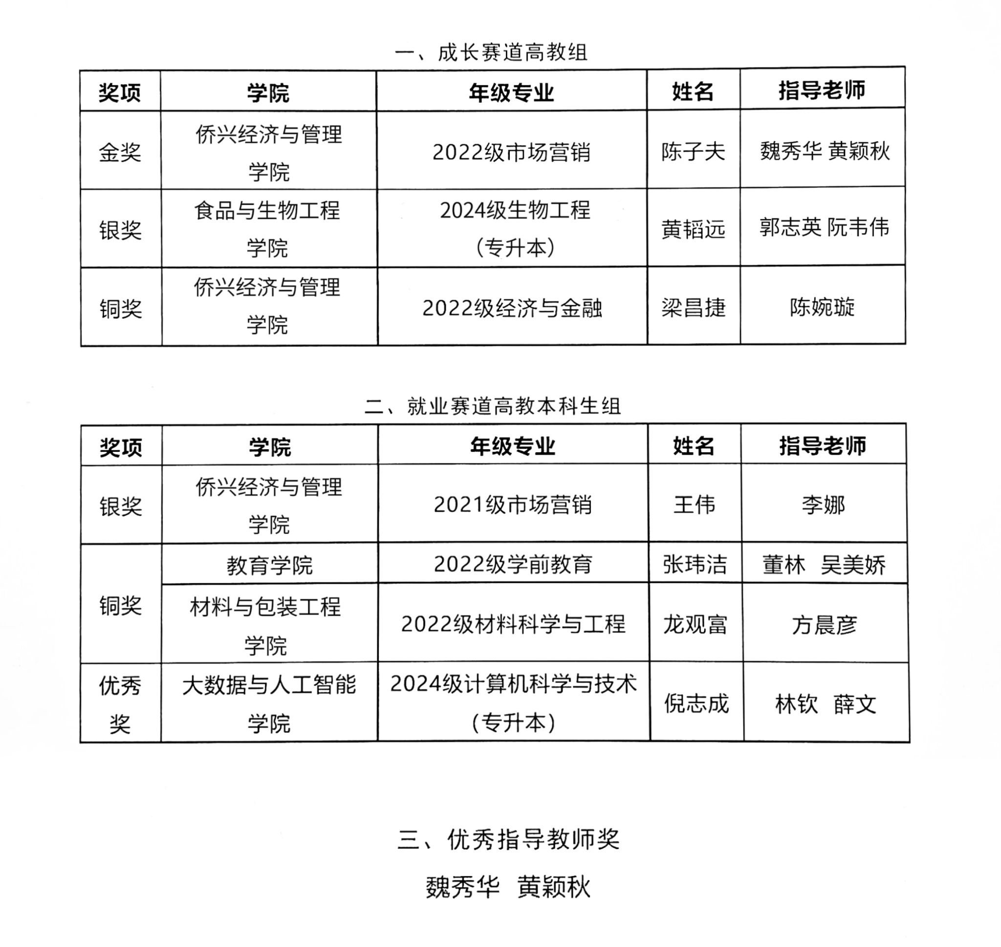 近日,第十七届福建省大学生职业规划大赛获奖名单正式公布。我校学子在大赛中表现出色,共获得金奖1项、银奖2项、铜奖3项、优秀奖1项,2名指导教师获评“优秀指导教师”,获奖数量为我校参赛以来最多。